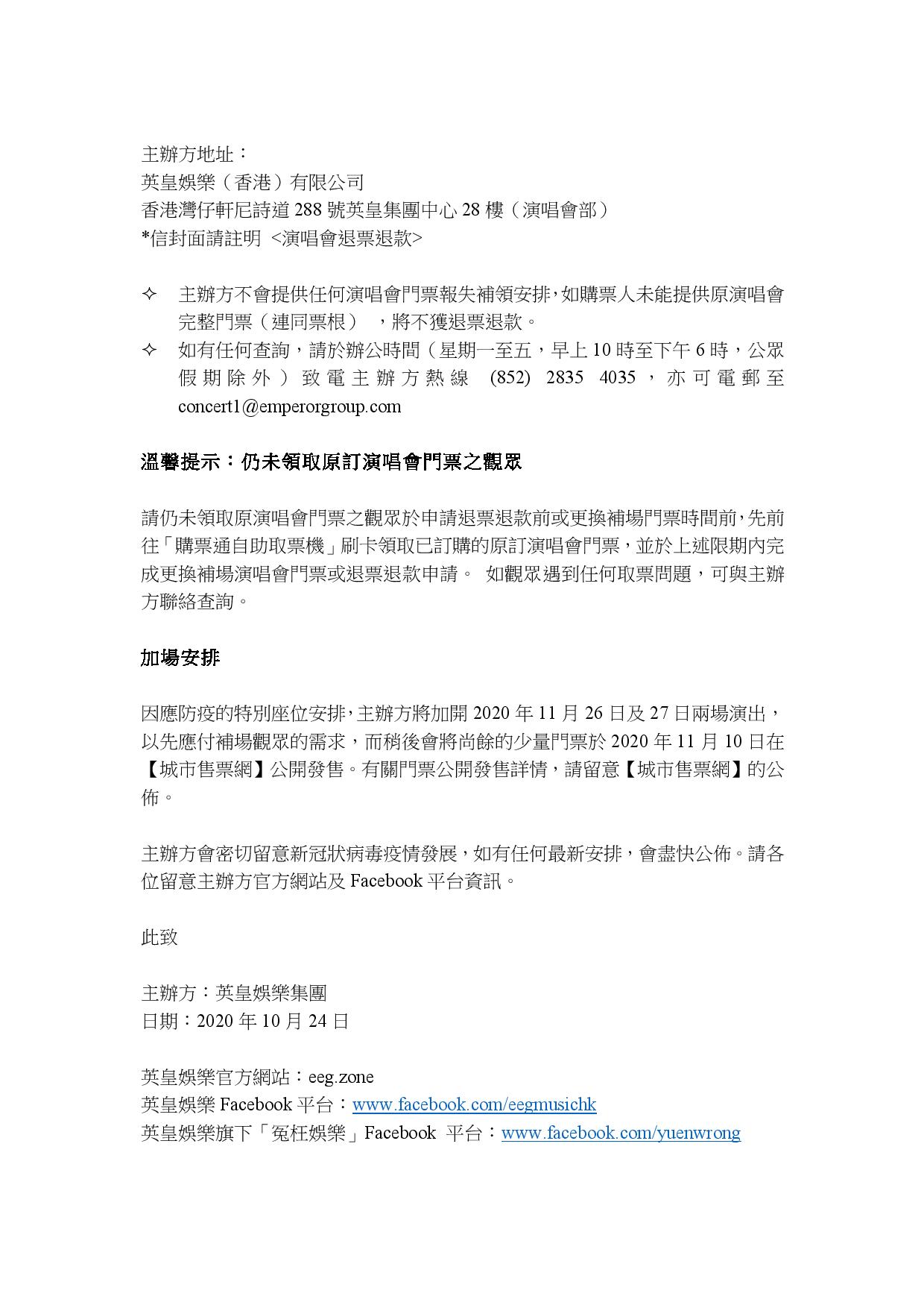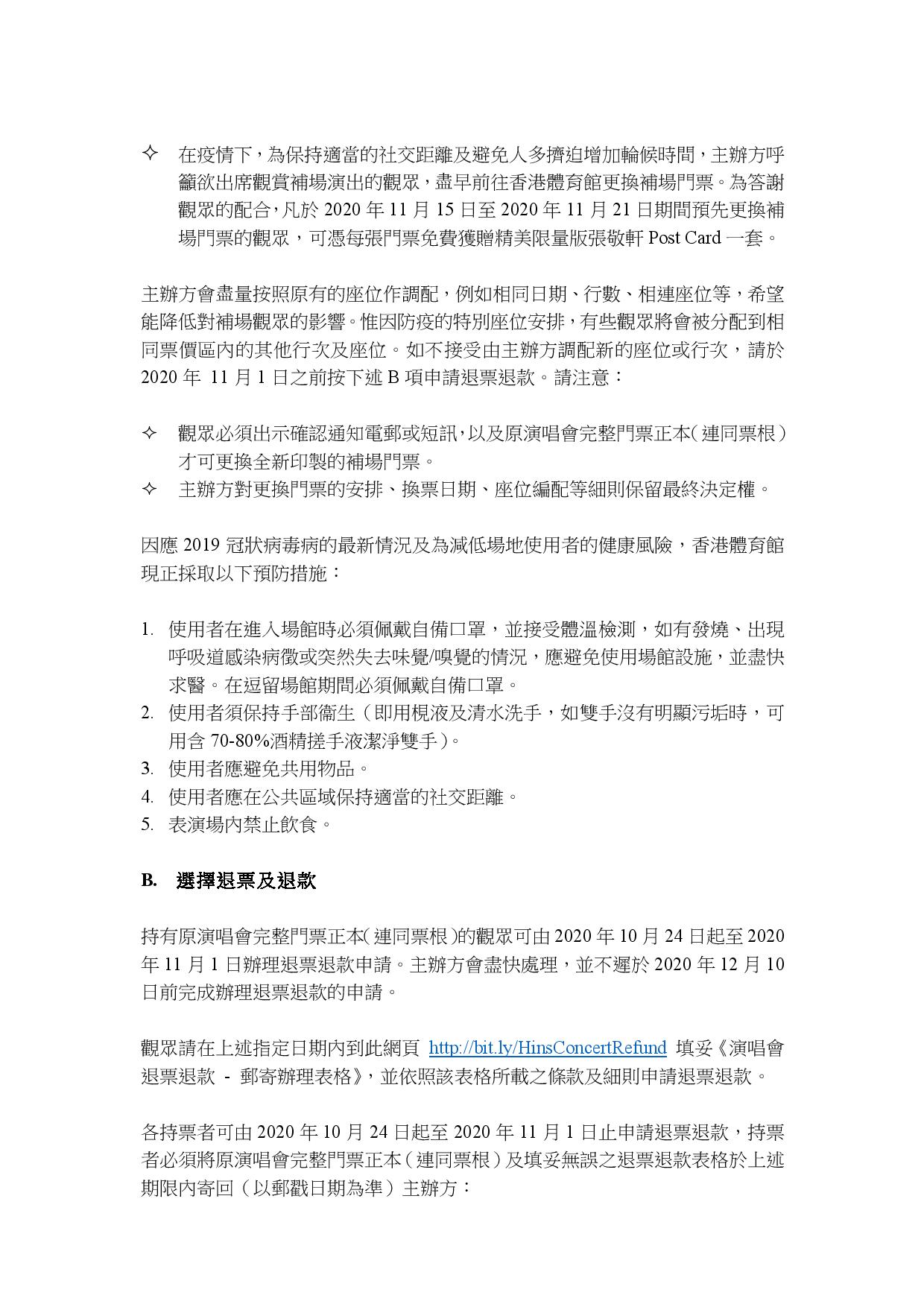 有關「張敬軒x 香港中樂團盛樂演唱會」補場換票或退票的安排,敬請留意。